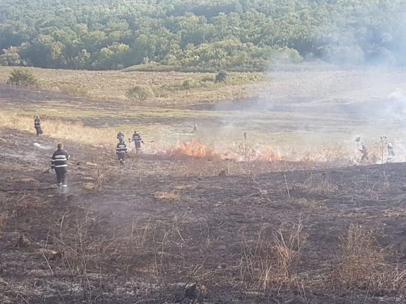 După câteva ore de luptă cu flăcările, incendiul a fost stins. A ars vegetația uscata pe circa 15 hectare.