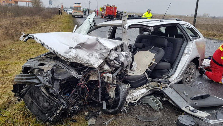 Polițiștii fac cercetări pentru a stabili cauza producerii accidentului.