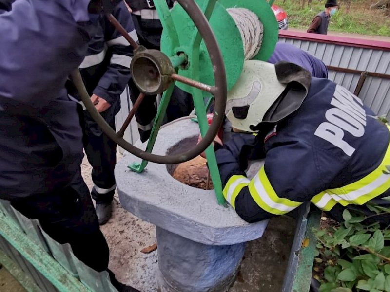 Intervenția a fost una extrem de dificila având în vedere faptul ca fântână era foarte îngustă, având diametrul de circa 40 cm.