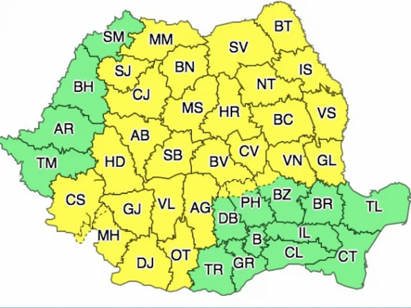 Admininistrația Națională de Meteorologie a emis o atenționare de COD GALBEN de instabilitate atmosferică temporar accentuată până astăzi, 25 august, la orele 23.00.