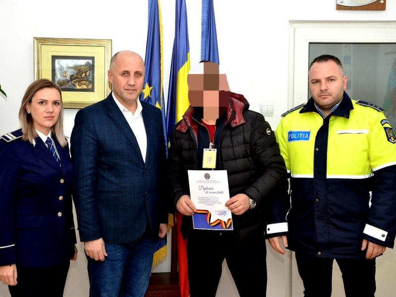 Trei cetățeni, respectiv doi bărbați de 48 și 36 de ani și o femeie de 50 de ani, au dat dovadă de curaj și spirit civic în momentul în care au ales să intervină pentru sprijinirea forțelor de ordine. Cei doi bărbați au fost martorii unui accident rutier și au observat că șoferul autoturismului responsabil de producerea acestuia este într-o stare vădită de ebrietate și încearcă să se sustragă, moment în care au decis să-l urmărească, concomitent cu sesizarea forțelor de ordine și au reușit să-l rețină până la sosirea acestora.