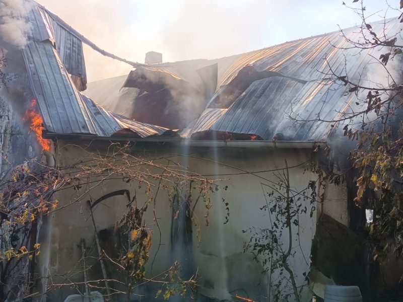 Incendiul a fost stins în limitele găsite de pompieri. A fost înlăturat și pericolul de explozie, din interior fiind scoase două butelii.