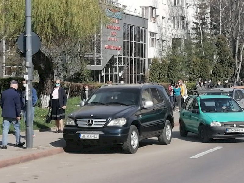 Pe strada Cuza Vodă, pe o distanță de câteva zeci de metri, botoșănenii au format un rând „frumos”, dar au încercat să păstreze o distanță „regulamentară” pentru a evita răspândirea virusului.