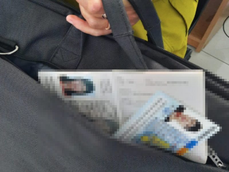 În bagajele personale au fost descoperite o carte de identitate cu însemnele autorităţilor din România, ce avea aplicată fotografia persoanei, document ce nu îndeplinea condiţiile de formă şi fond ale unuia autentic, fiind fals, precum și un pașaport simplu cu însemnele autorităților din România, ce avea fila informatizată falsificată.