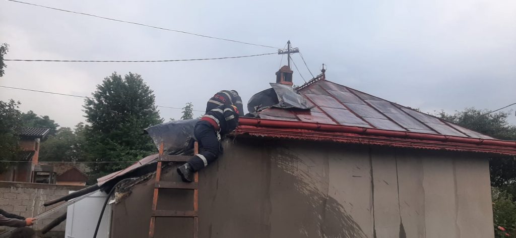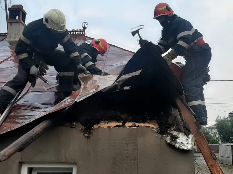 Tavanul anexei unde era boilerul a luat foc de la coșul de evacuare a fumului. Puțin a lipsit ca flăcările să nu se extindă și la o casă.