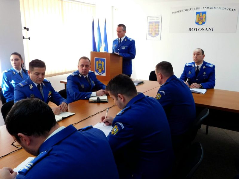 Activitatea, organizată în sistem videoconferință, a fost prezidată de generalul de brigadă Uzlău Liviu, prim-adjunctul inspectorului general și Șef al Statului Major al Jandarmeriei Române, materialul de bilanț fiind prezentat de colonelul Boariu Cristian, inspector șef al Inspectoratului de Jandarmi Județean Botoșani.