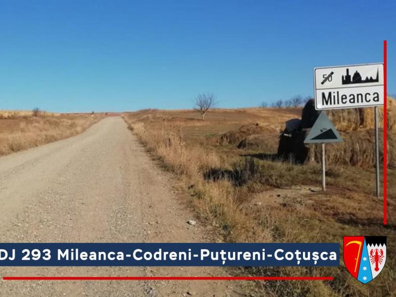 – Mileanca – Codreni – Puțureni – Coțușca (DJ 293) – 15 kilometri – valoare proiect de modernizare 77,5 milioane lei (cu TVA);