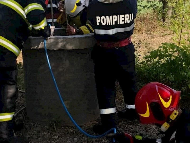 Unul dintre pompieri a coborât în fântâna adâncă de circa 20 de metri și, ajutat de ceilalți colegi, l-a adus la suprafață.
