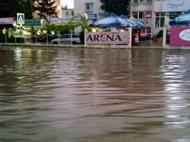 Ploaia care a căzut în urmă cu aproximativ jumătate de oră a dat peste cap sistemul de canalizare din oraş. Volumul mare de apă revărsată din cer a făcut ca sistemul de canalizare să nu mai facă faţă, astfel încât în multe zone din oraş s-au acumulat mari cantităţi de apă pe carosabil.