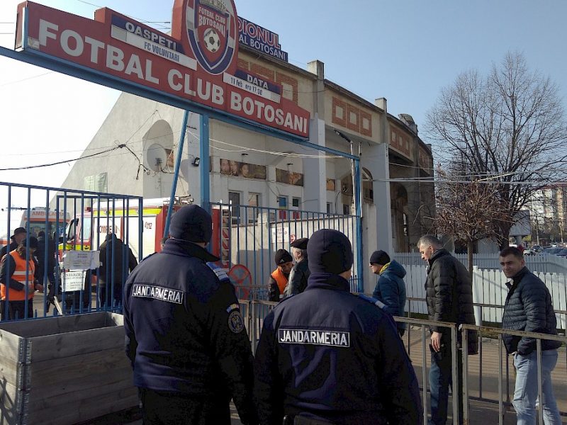 În prima zi a săptămânii următoare, începând cu ora 17.30, jandarmii botoșăneni vor acționa în sprijinul Grupării de Jandarmi Mobile Bacău în vederea desfășurării în condiții de siguranță și fairplay a meciului de fotbal din Liga I dintre FC Botoșani și FC Hermannstadt.