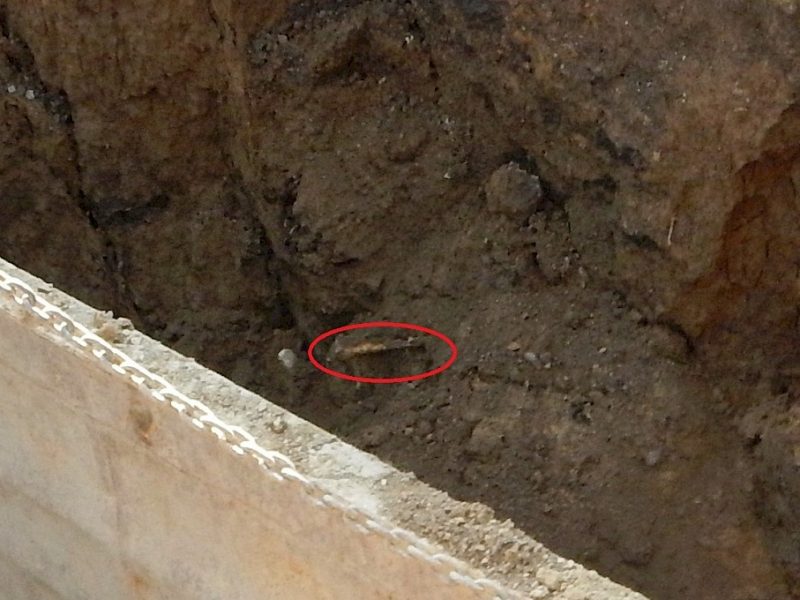 găsite fragmente de schelet uman. Imediat au fost anunţaţi reprezentaţii Primăriei, Poliţiei şi ai Direcţiei de Cultură. O echipă formată din arheologi şi criminalişti s-a deplasat la faţa locului.