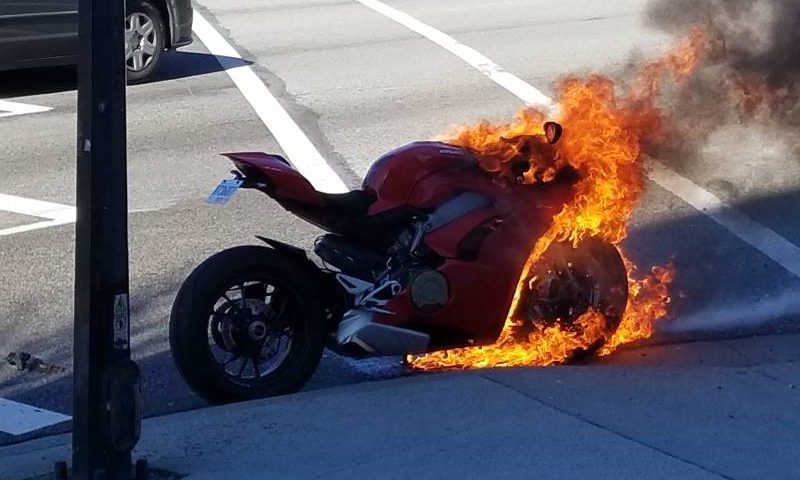 Flăcările și căldura radiată au afectat o altă motocicletă, parcată în apropiere, dar și izolația unei cladiri invecinate.