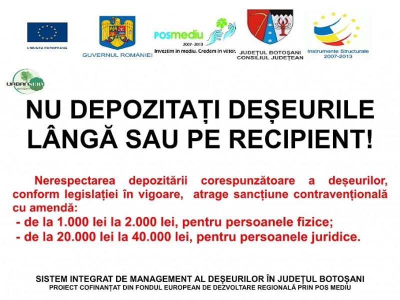 NU DEPOZITAȚI DEȘEURILE LÂNGĂ SAU PE RECIPIENT!