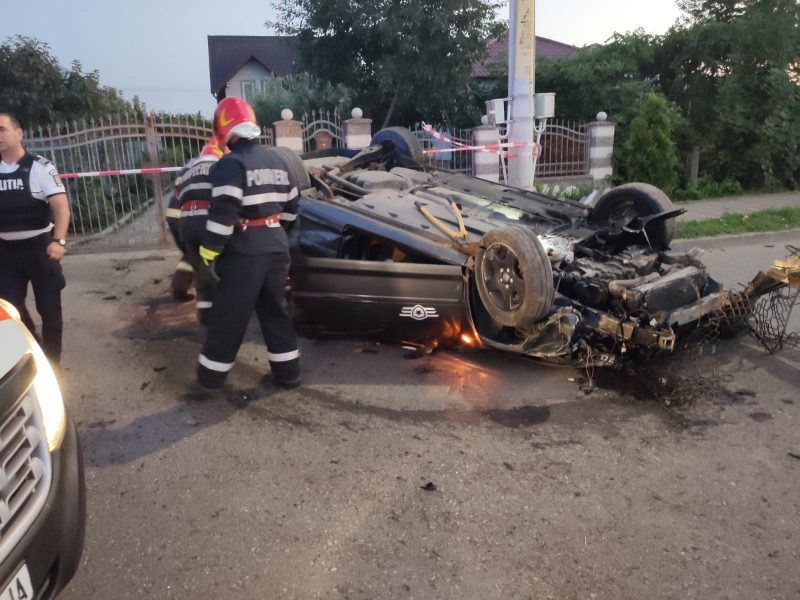 La fața locului s-au deplasat pompierii cu o autospecială cu apă și spumă, dar și un echipaj SMURD. Au găsit autoturismul răsturnat pe cupolă, iar ocupantul, un tânăr de 18 ani, era în exteriorul acestuia, fiind scos de localnicii din zonă.
