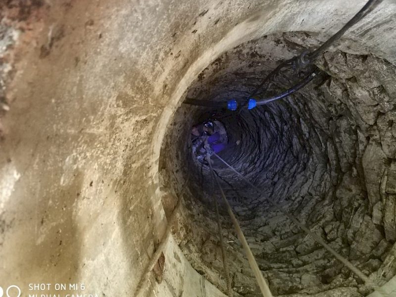 Unul dintre pompieri a coborât în fântână şi a adus femeia la suprafață.