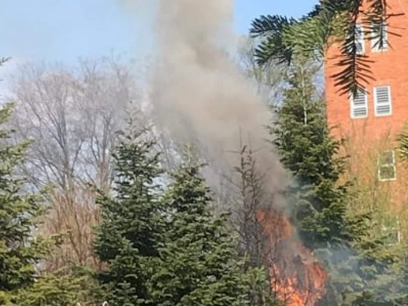 Mai mulți brazi din parcul din apropierea Spitalului Municipal Dorohoi au fost prinși de flăcări.