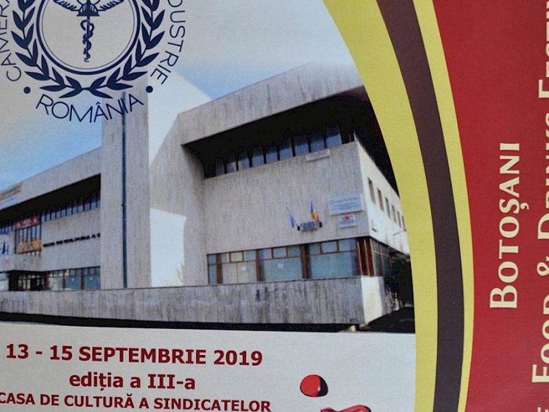SC Diasos Top Distrib SRL, cu sprijinul Camerei de Comerţ, Industrie şi Agricultură Botoşani organizează „Botoşani Wine, Food & Drinks Festival” ediţia a III-a. Manifestarea, cu tema „Vinul cu prietenii” se va desfăşura în perioada 13-15 septembrie 2019 la Casa de Cultură a Sindicatelor Botoşani.