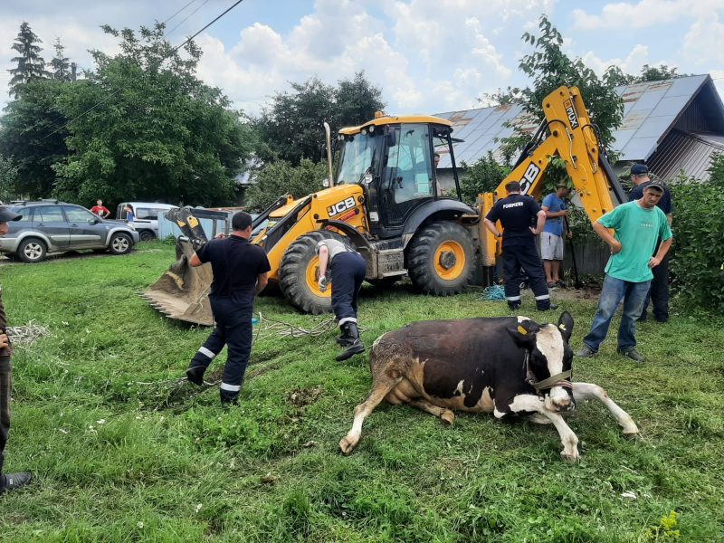 Rămasă captivă într-o fântână dezafectată de pe raza satului Lunca din comuna Vârfu Câmpului, o bovină gestantă a fost salvată de pompierii din Dorohoi.