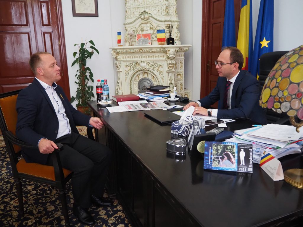 Primarul municipiului Botoșani, Cosmin Andrei, s-a întâlnit cu președintele Asociației „Salvează o inimă”, Vlad Dumitru Plăcintă, la primărie.