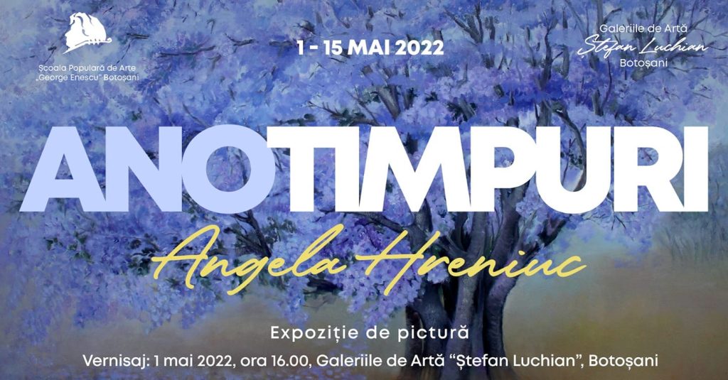 Muzeul Judeţean Botoşanigăzduiește, în perioada 1-15 mai 2022, în spațiul Galeriilor de Artă ,,Ștefan Luchianˮ Botoșani, expoziția „Anotimpuri”, prezentând lucrări de pictură semnate de Angela Hreniuc, din Botoșani.