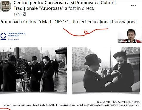 Miercuri, 24 februarie, în cadrul proiectului, a fost organizat un seminar de formare online cu tema „Pedagogia de patrimoniu”. Până pe data de 10 martie se desfășoară activități educaționale cu copii și tineri. Astfel, se va realiza ● un documentar despre practicile culturale asociate zilei de 1 martie și sărbătoarea mărțișorului, ● o activitate în colaborare cu o școală aparținătoare etniilor conlocuitoare sub genericul „Primăvara prieteniei MarțUNESCO în alb și roșu”.
