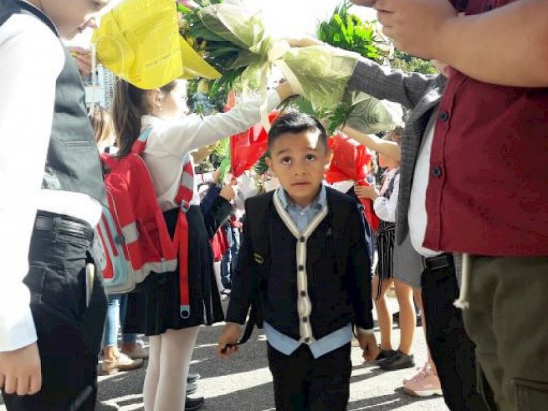Festivitatea de deschidere a anului școlar i-a avut ca actori principali pe cei mici, însă, veniți acum pentru chiar prima zi de școală. Au fost așteptați cu podul de flori realizat de cei de-a IV-a, iar imaginile celor ce treceau pe sub pod au fost de-a dreptul încântătoare.